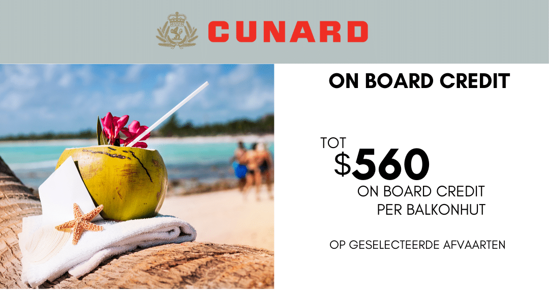 Ontvang nu op verschillende afvaarten tot $560 on board credit!