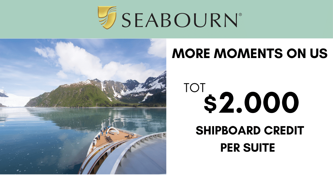 Geniet van Seabourn’s More Moments On Us boordtegoed tot wel $2000 per suite.