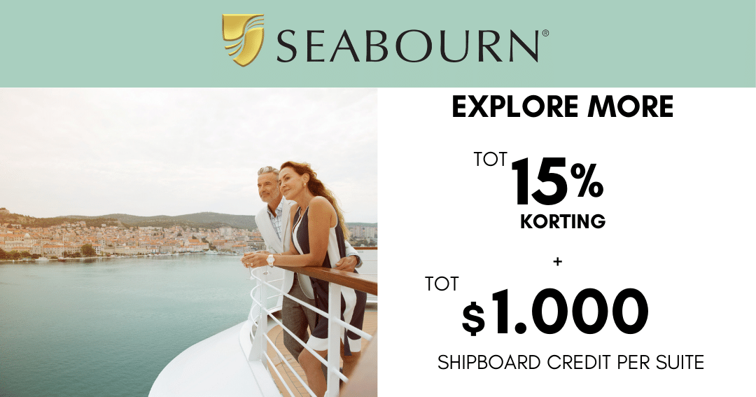 Boek nu uw cruise bij Seabourn en ontvang tot 15% korting & tot $1000 shipboard credit per suite