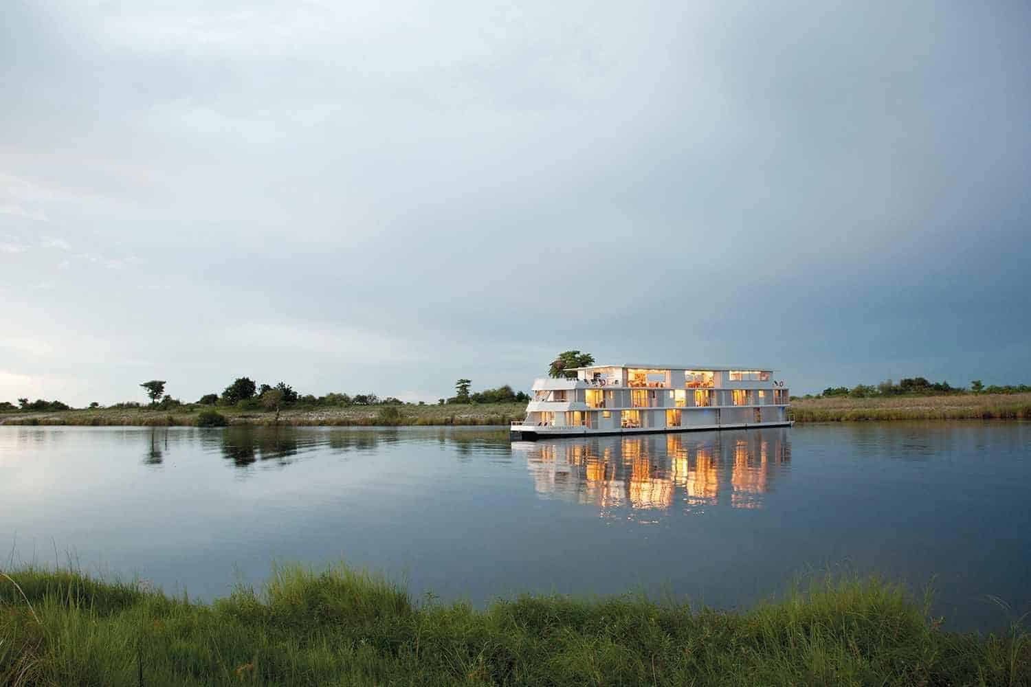 De intieme Zambezi Queen met 28 passagiers, speciaal ontworpen voor het bekijken van dieren in het wild, maakte haar debuut op een van ’s werelds meest fascinerende plekken, de legendarische Chobe-rivier in Afrika. Terwijl ze langs de rivier drijft, zien dieren geen bedreiging, waardoor je een unieke game-ervaring van dichtbij krijgt. Om het milieu niet te schaden, gebruikt de milieuvriendelijke Zambezi Queen bovendien een waterstraal-voortstuwingssysteem, zuinige generatoren met lage emissies en een zonneverwarmingssysteem. Een omsloten eetkamer, lounge en bar met airconditioning sieren het bovendek, evenals een zonneterras in de open lucht, compleet met dompelbad.