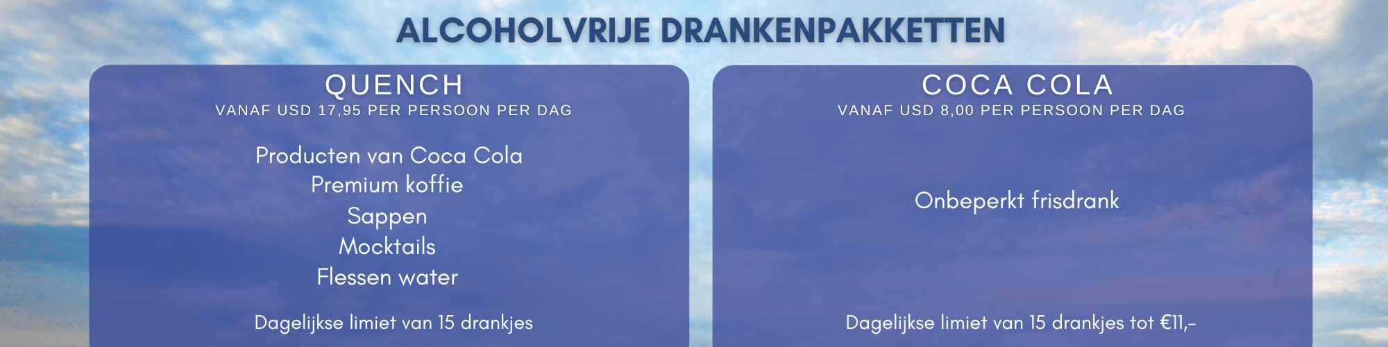 Op onze website worden de prijzen getoond zonder het Have it All pakket, tenzij anders vermeld. Wilt u weten wat uw cruise kost inclusief het pakket dan kunt u telefonisch of per email contact met ons opnemen.
